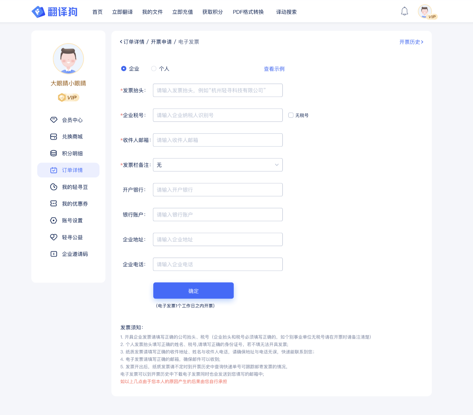 (2)根据表单提示内容输入相应信息即可。将于1个工作日内完成开票并发送至收件人邮箱。