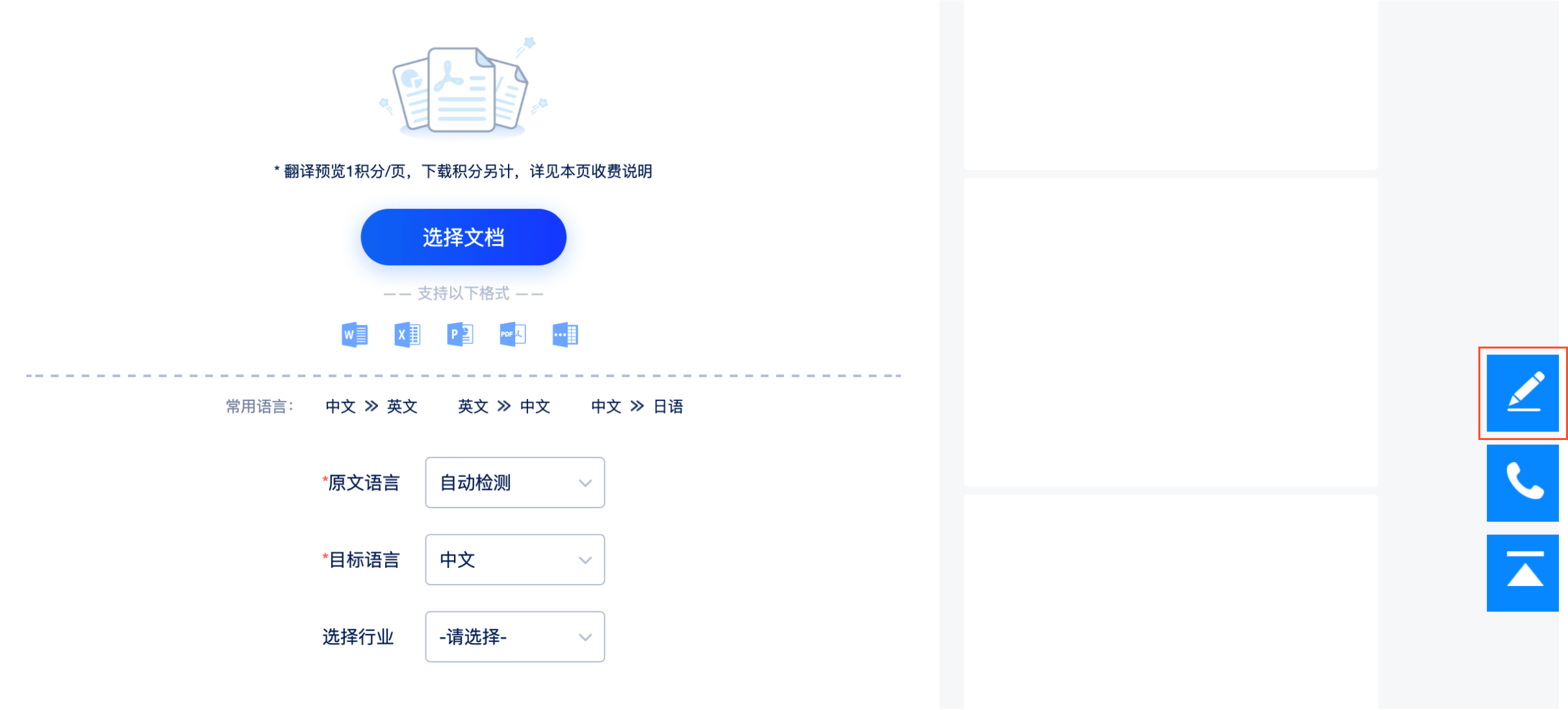 翻译文档遇到问题时,可点击页面右侧第一个蓝色图标进行反馈